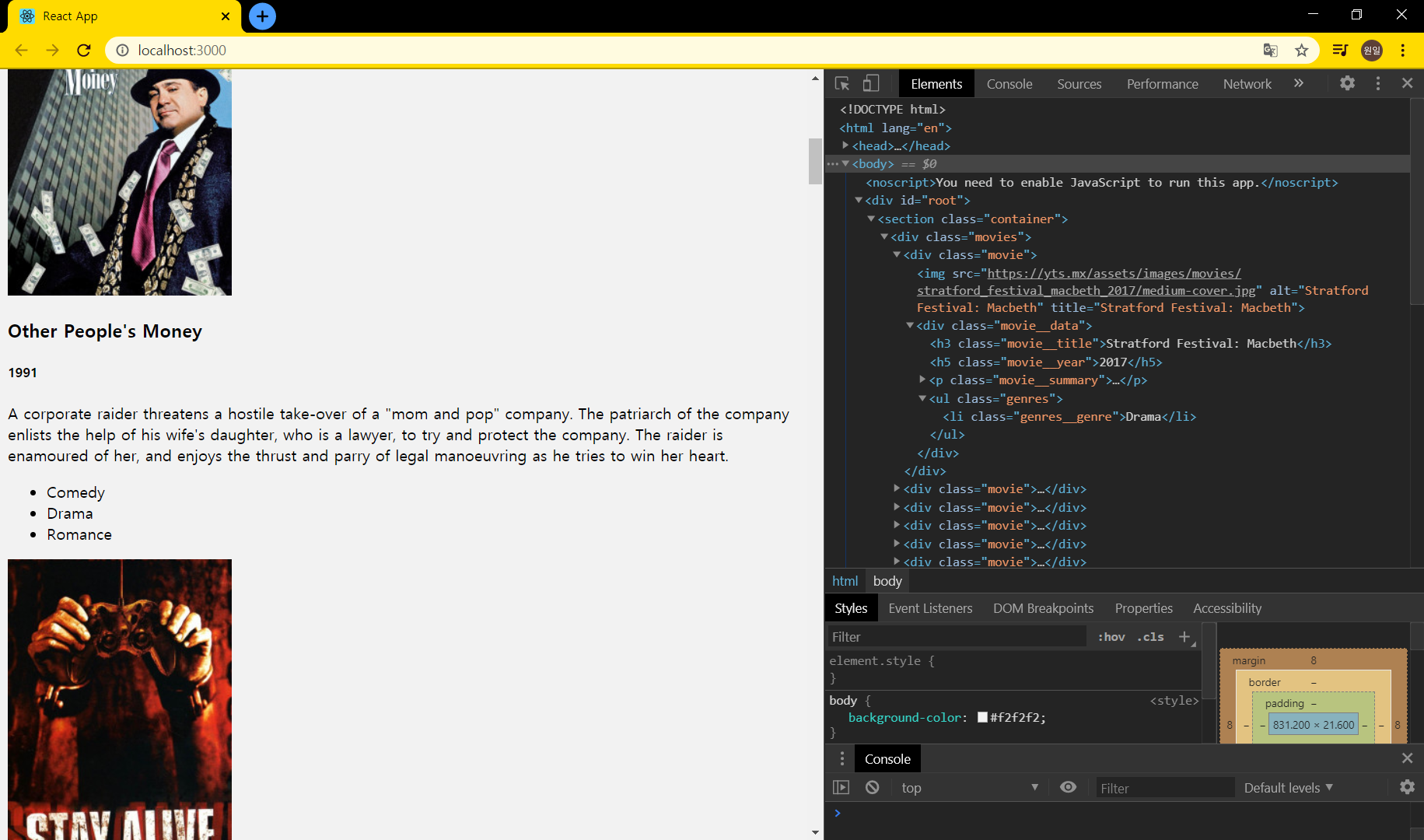 App.js와 Movies.js를 좀 html스럽게 수정해보자.