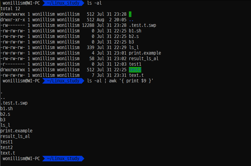 $ awk 'pattern {action}' filename 무슨 조건에 몇 번째 필드