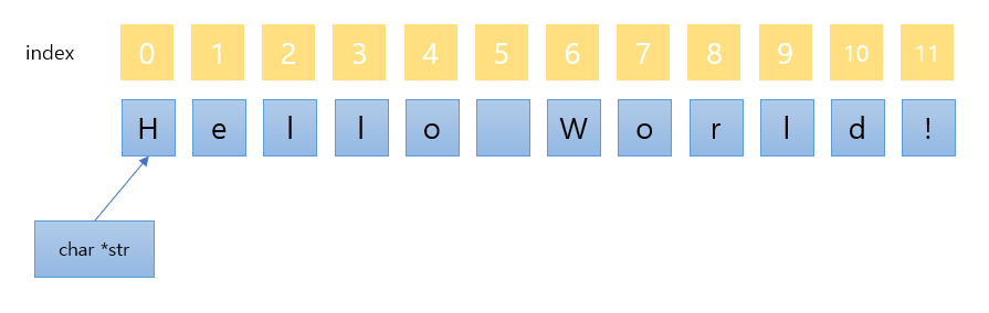 위와 같은 구조로 저장되어있다고 생각하면 편하다. 포인터 변수 *str과 dest의 첫 번째 주소를 넘겨주어 인덱스 값을 넘기며 dest[i]에 str[i]를 복사해주고 dest[i]의 마지막에 '\0' NULL값을 넣고 dest의 첫 번째 주소를 반환한다.