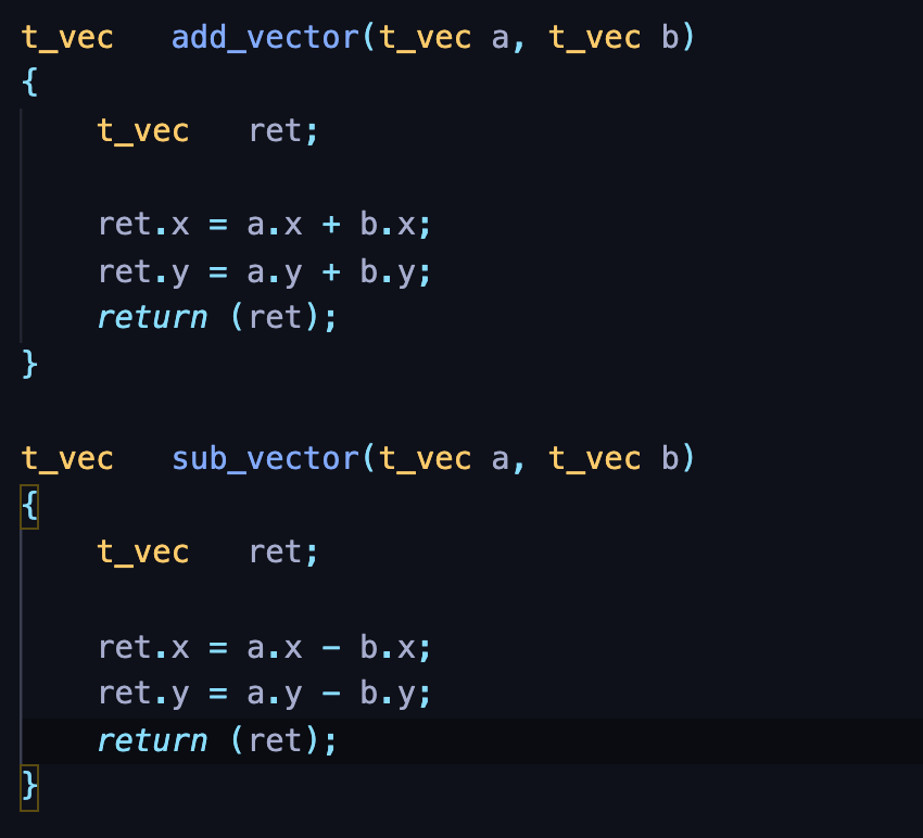 우선 벡터의 덧셈과 뺄셈을 해주는 함수를 만들어보자.