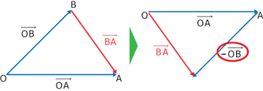 그림에는 나오지 않지만, 왼쪽그림에서 OA - OB에서 OB벡터의 반대방향이 OC라고할 때