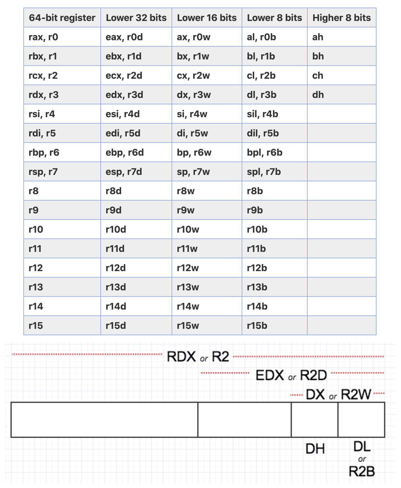 AX(Accumulator Register)는 피 연산자에 대한 결과에 대한 누산기로 사용된다. 이러한 특성 때문에 함수의 return 값을 저장할 때에도 사용된다.