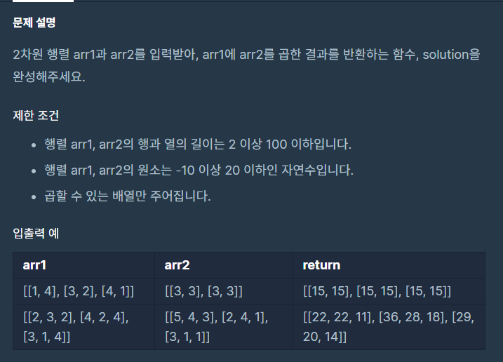 return [[sum(a*b for a, b in zip(arr1_row,arr2_col)) for arr2_col in zip(*arr2)] for arr1_row in arr1]728x90