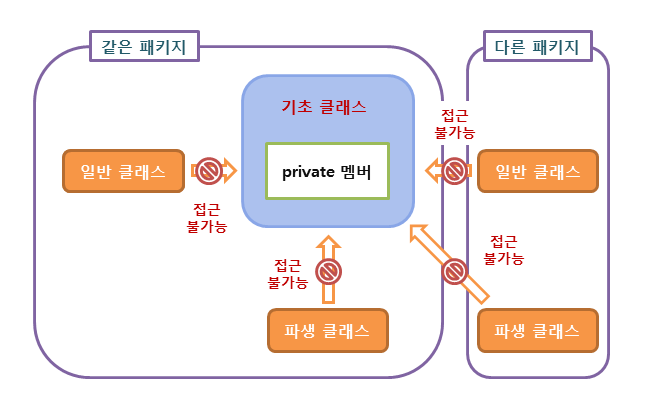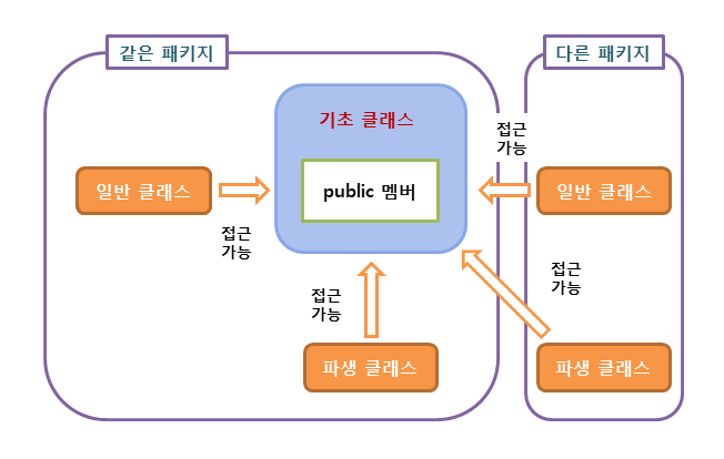 - protected : 상속관계에 놓여있을 때, 유도 클래스에서의 접근허용