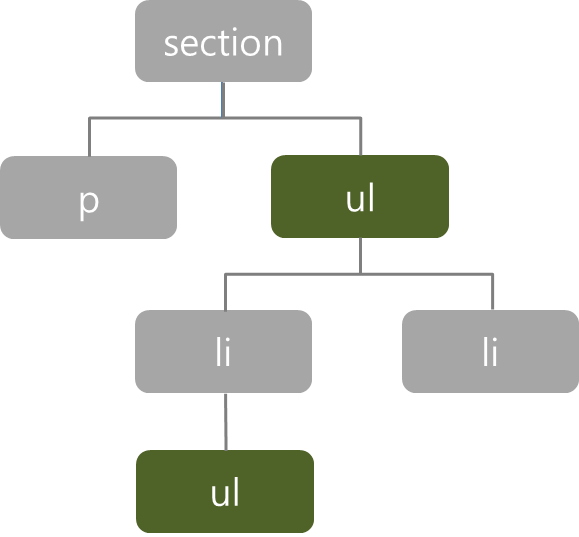 - section>ul { color: blue}