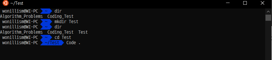 Test 디렉토리를 만들고 VSCode를 실행하자.