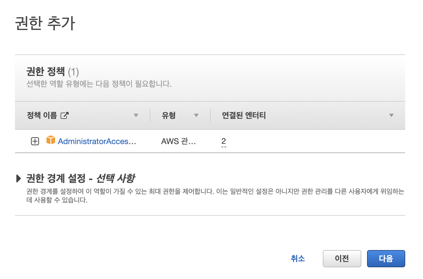 AWS 계정 만드는 방법은 생략. 프로젝트 진행은 루트 계정이 아닌 IAM 계정으로 진행하는 것을 권장한다.