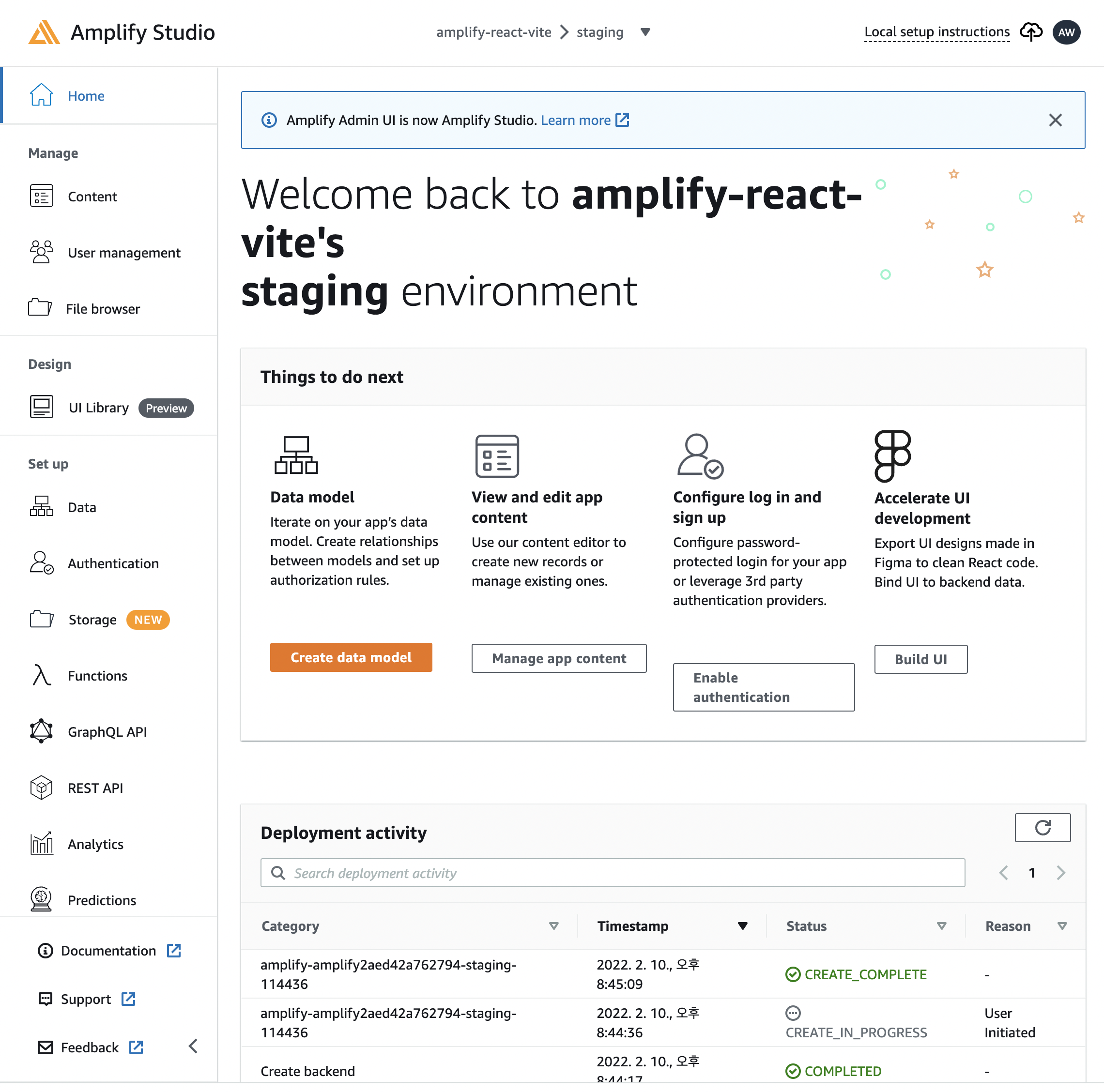 1. Amplify Studio 시작