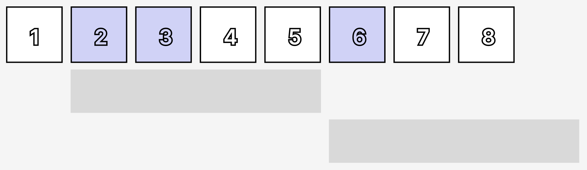 넓은 벽 전체에 페인트를 새로 칠하는 대신, 구역을 나누어 일부만 페인트를 새로 칠 함으로써 예산을 아끼려 합니다. 이를 위해 벽을 1미터 길이의 구역 n개로 나누고, 각 구역에 왼쪽부터 순서대로 1번부터 n번까지 번호를 붙였습니다. 그리고 페인트를 다시 칠해야 할 구역들을 정했습니다.
