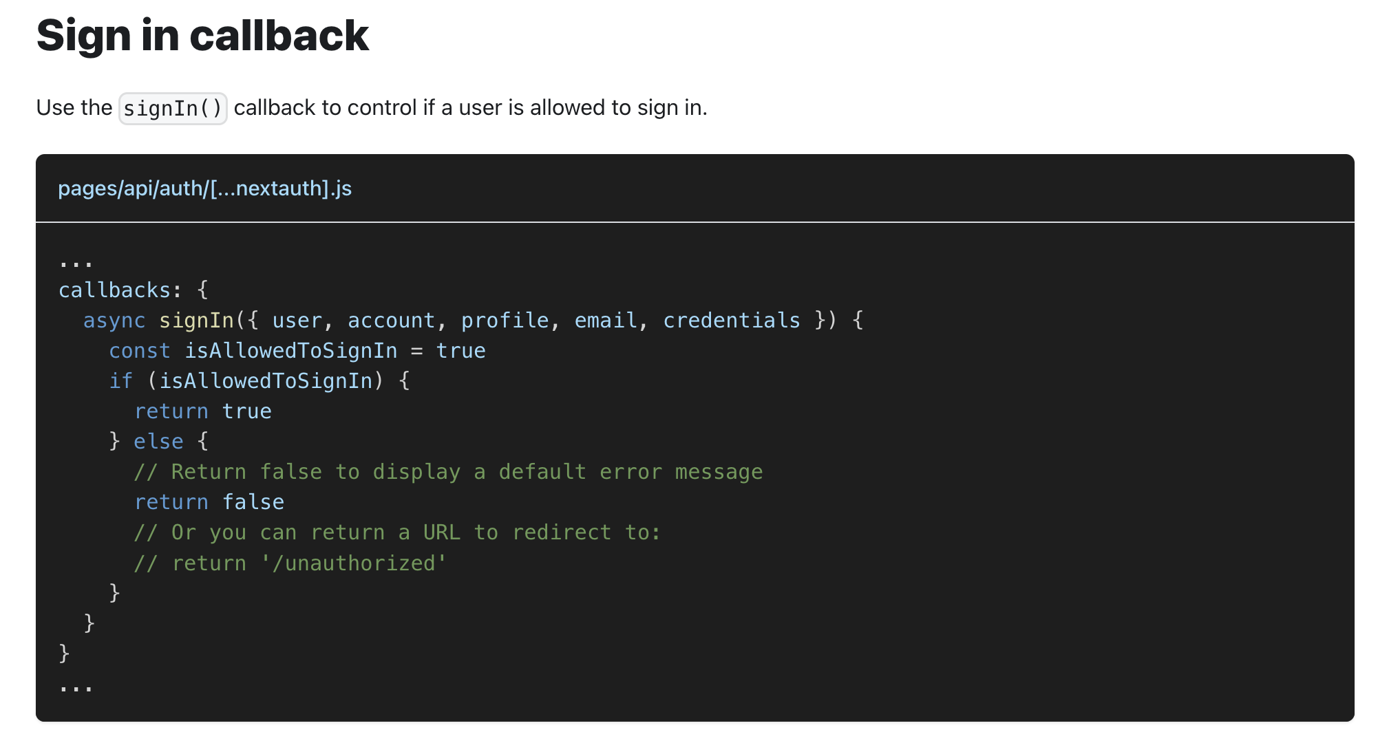 next-auth가 제공하는 callback 중에 signIn을 한 번 뜯어보자.