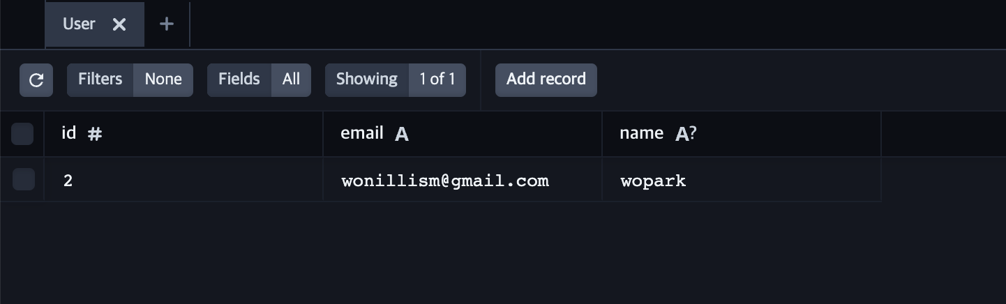 그리고 prisma studio에서도 잘 추가된 것을 확인할 수 있다.