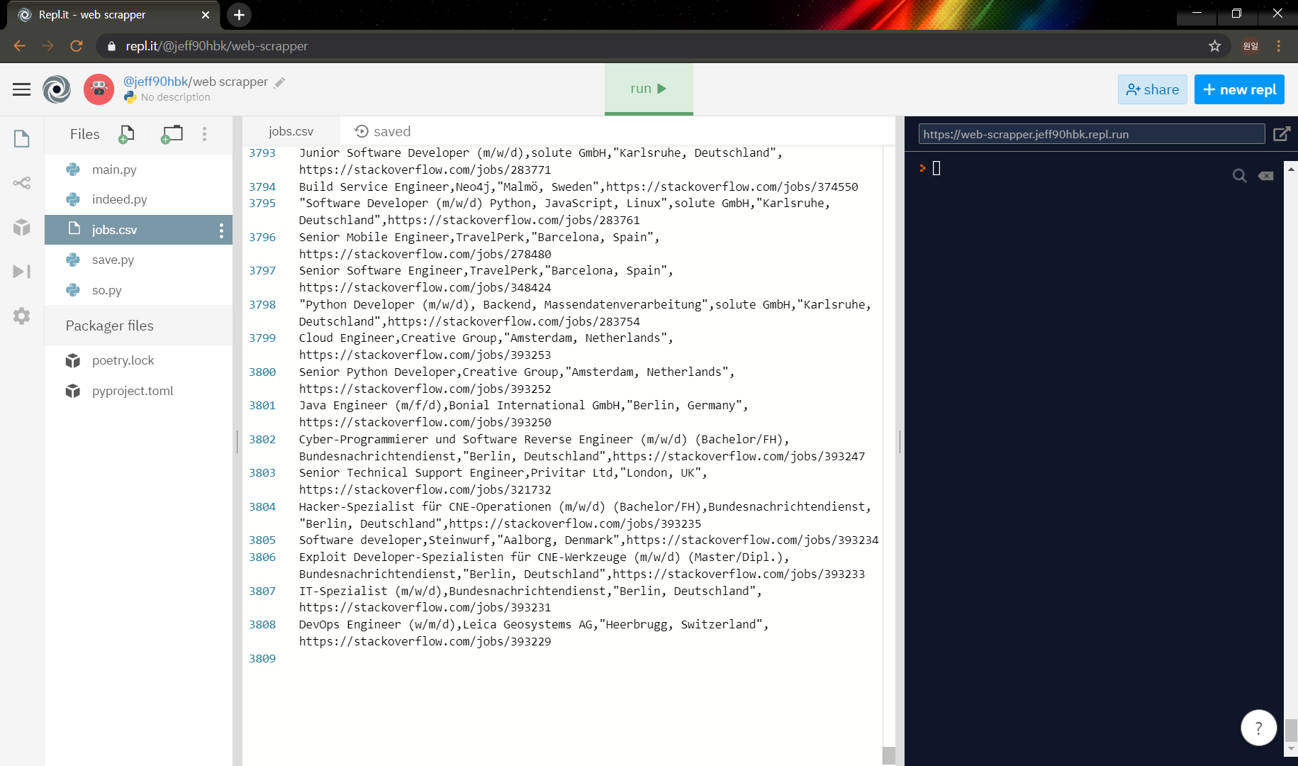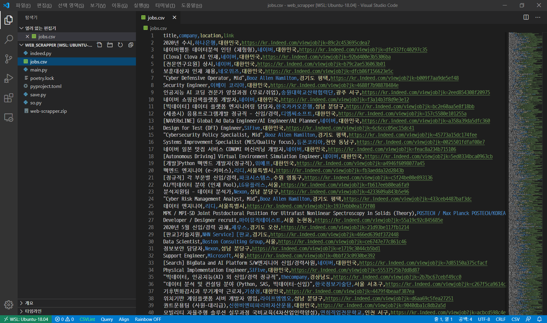 와우... 3808개의 채용정보가 스크래핑 됐다!