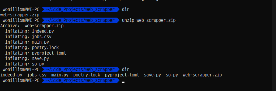 unzip을 통해서 압축을 풀어주자.