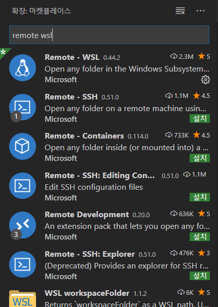 Extension > remote wsl 설치